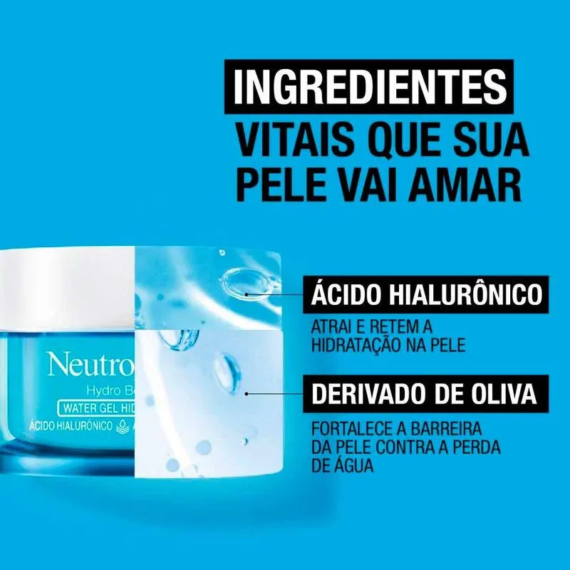 O que é e para que serve? Um Hidratante Facial com Ácido Hialurônico que restabelece os níveis de água da pele ao longo do dia, estimula sua renovação, fortalecendo a barreira de proteção natural contra o ressecamento. Com exclusiva textura ultraleve gel de rápida absorção, hidrata por 48 horas controlando e reduzindo a oleosidade. Benefícios e diferenciais: -48h de hidratação: preenche instantaneamente a pele com 2 vezes mais hidratação. -Com ácido hialurônico: restabelece os níveis de água na pele e estimula sua renovação, fortalecendo a barreira natural da pele. -Textura ultra leve water gel: controle da oleosidade. -Dermatologicamente testado e não comedogênico: não obstrui poros. -Ideal para todos os tipos de pele, inclusive peles oleosas. Como Usar: Com a pele limpa, aplique o produto sobre o rosto e pescoço e espalhe suavemente até a absorção completa. Pode ser usado diariamente, pela manhã e/ou à noite. Pode ser aplicado antes da maquiagem. Para uma rotina de hidratação completa, combine com o Sérum Hidratante NeutrogenaHydro Boost. Composição: -Ácido Hialurônico: Protege a barreira cutânea contra a perda de água, mantendo uma hidratação intensa e prolongada. Precauções: Somente para uso externo. Não ingerir. Evite contato direto com os olhos. Caso isso aconteça enxaguar abundantemente. Se ocorrer irritação ou desconforto, descontinue o uso e consulte um médico. Conservar fora do alcance das crianças, em local fresco e seco. USO ADULTO. Sobre a Marca: Neutrogena é uma empresa fundada em 1930 por Emanuel Stolarof, especializada em produtos dermatológicos para cuidados com a pele que, desde 1996, passou a ser comercializada no Brasil através da Johnson & Johnson Brasil. Seus dermocosméticos atendem a diversos públicos, tratando intensamente desde a hidratação da pele até os cuidados com o sol.